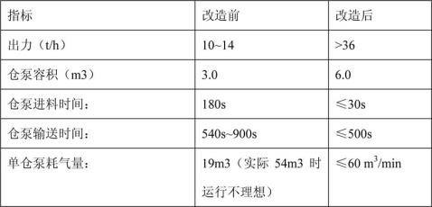4、通過管道拉直彎頭處改造及增加自動補氣裝置,消除了管道易堵,輸送時吹掃時間長,出力不足現象,目前系統運行情況穩定,出力在36t/h以上,比預期出力高44%以上;