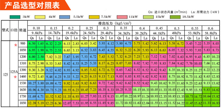 其流量從0.52m3/min-180m3/min,升壓值由9.8Kpa-98Kpa不等,總共二十種機型,2500多種參數規格,且有體積小,流量大,噪音低,運行平穩可靠等特點,相應的主流型號有:TSR50、TR65、TSR80、TSR100、TSR125、TSR150、TSR175、TSR200 、TSR250、TSR300、TSR350型。對應的電機功率從0.75kw-355kw。種類齊全,可滿足不同用戶不同用途的需要.