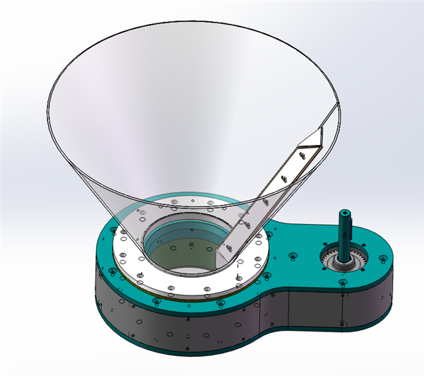刮板式下料器是由電機(jī)、殼體、齒輪、刮板等組成,由電機(jī)傳動(dòng)齒輪、齒輪傳動(dòng)刮板進(jìn)行破拱;一般安裝在料倉底部輔助下料,物料進(jìn)入刮板式下料器的料倉中,刮板電機(jī)帶動(dòng)齒輪傳動(dòng),齒輪傳動(dòng)刮板繞倉壁做圓周運(yùn)動(dòng),物料經(jīng)刮板作用力落下。